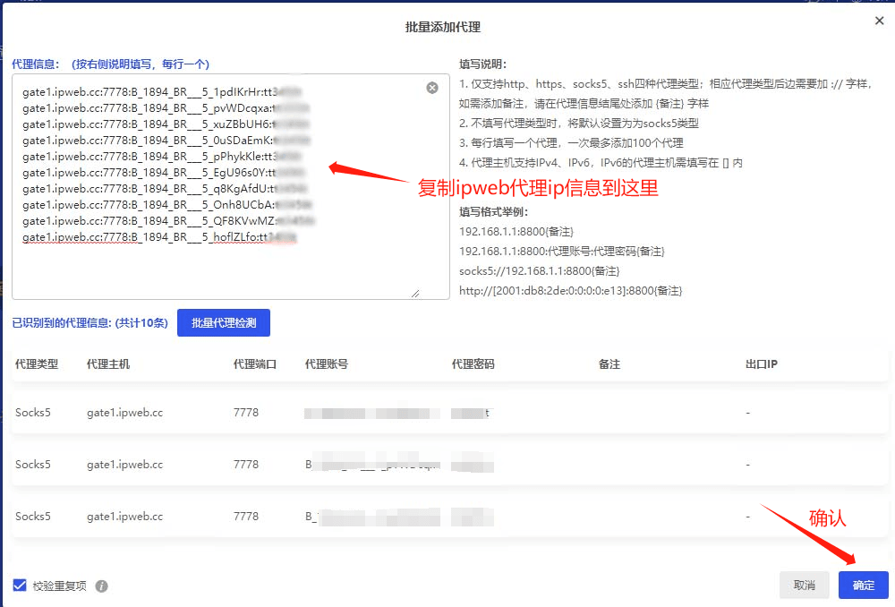 第3步:批量导入代理ip信息,如下图所示: