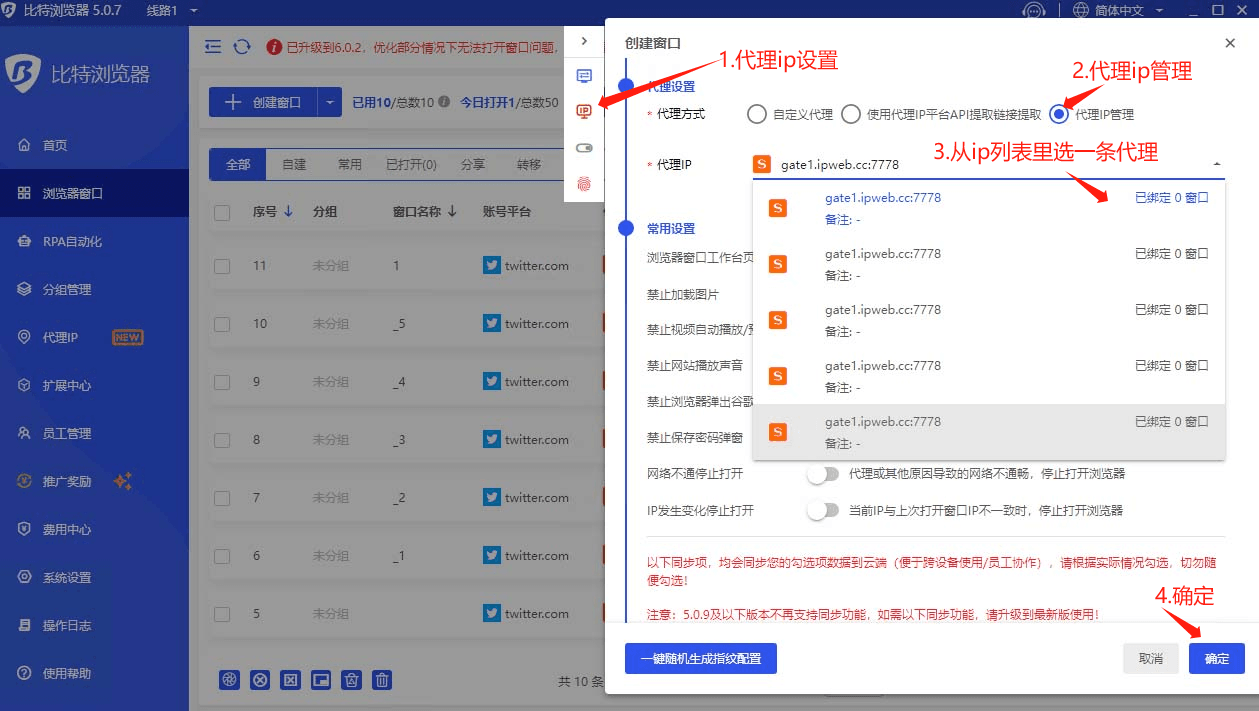 如何在比特指纹浏览器中使用ipweb代理?