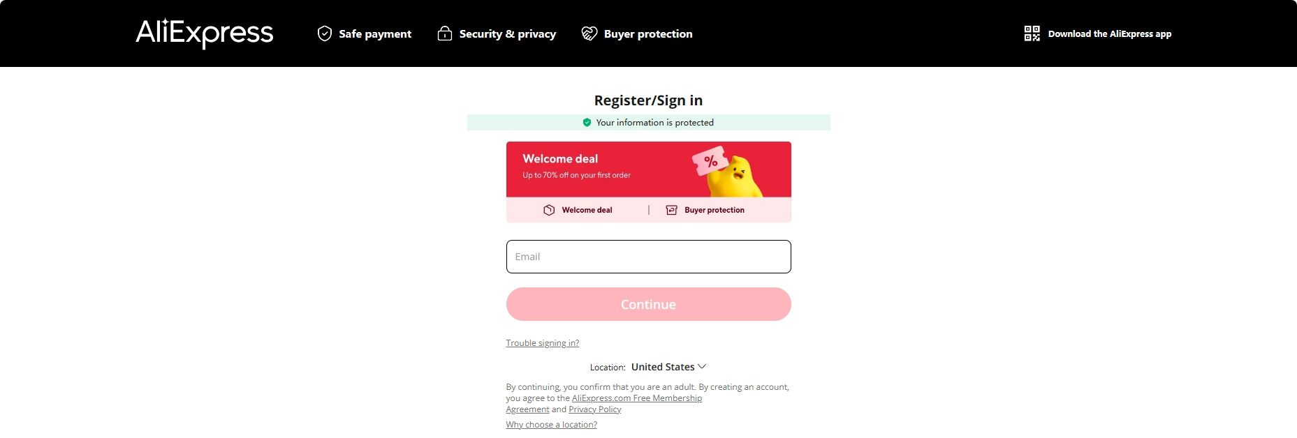 ①通过访问速卖通卖家入口:https://sell.aliexpress.com/,启动账号的注册步骤。