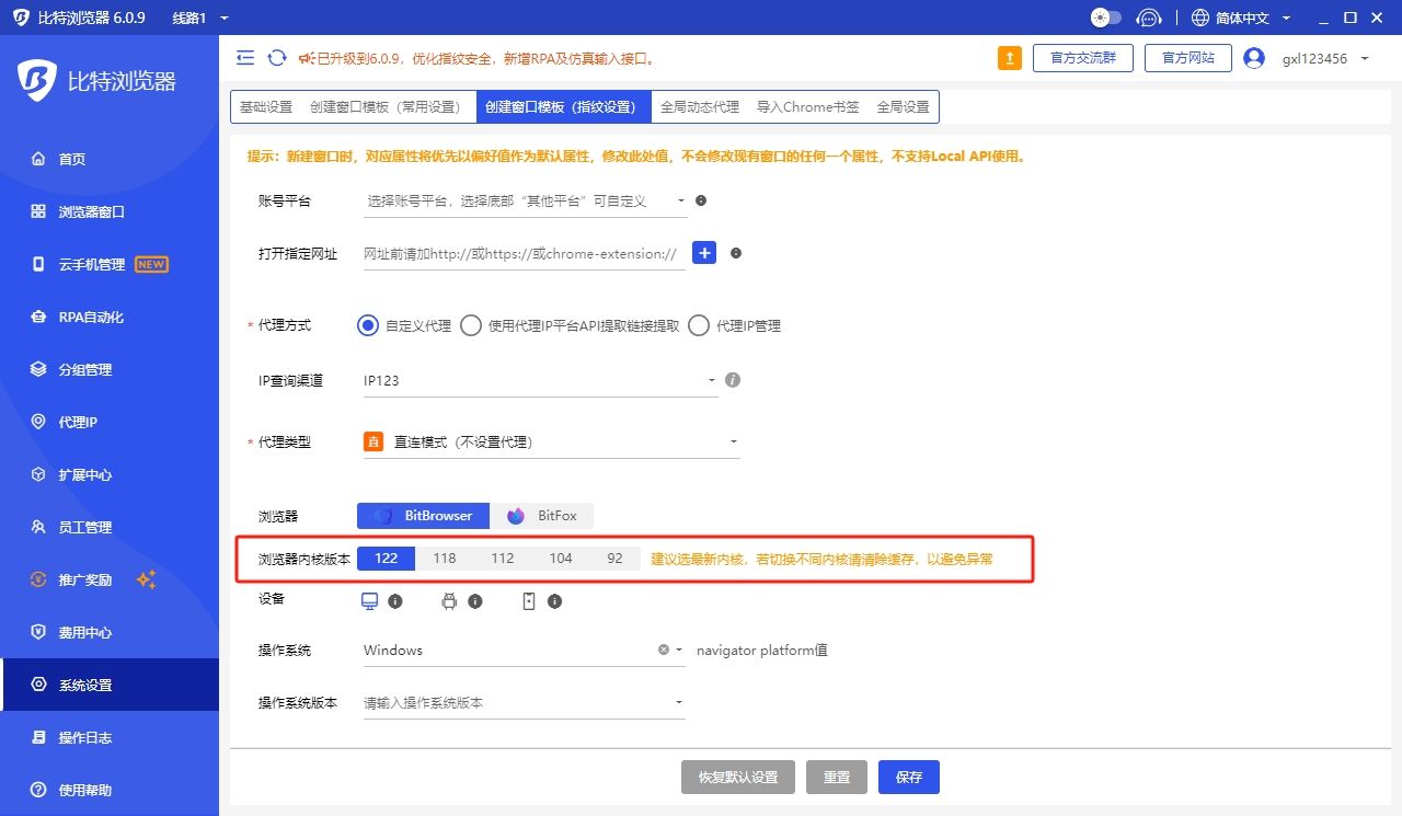 有关浏览器内核与版本的更新状况:在比特浏览器里,Chrome内核已经更新到Chrome122。