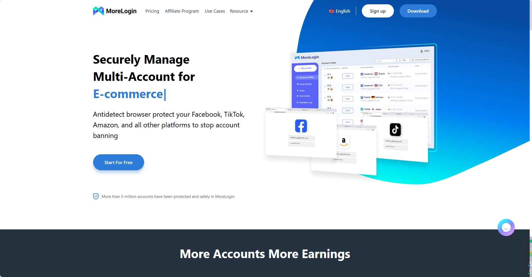MoreLogin 可帮助您创建多个浏览器指纹,您可以使用这些指纹同时使用同一平台的多个帐户,MoreLogin承诺提供的指纹永远不会重叠,因此您的任何帐户都不会被禁止。