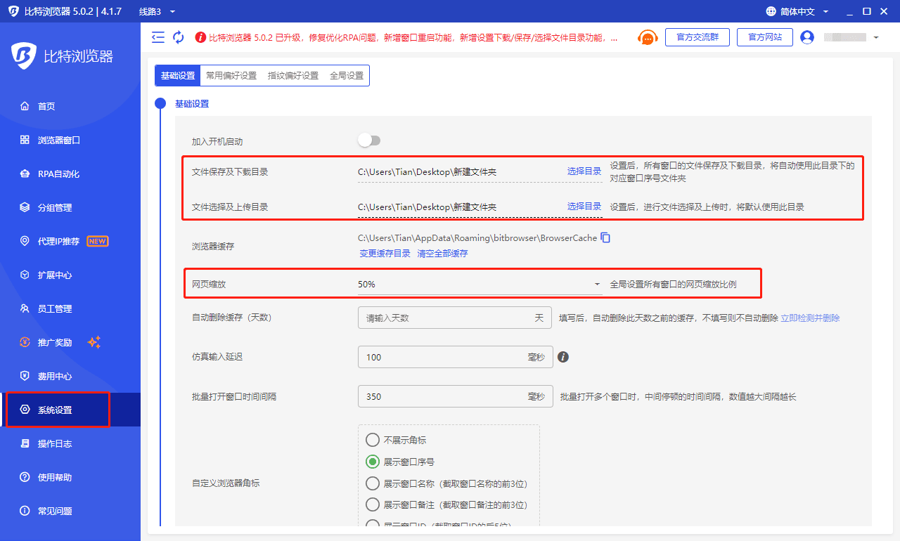 8. 系统设置新增网页缩放功能,可全局修改所有窗口的缩放比例
