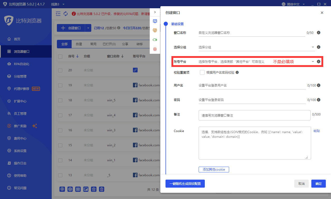 10. 创建/修改窗口时,取消平台 URL 的必选校验
