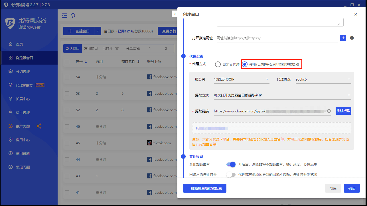比特浏览器,使用代理IP平台API提取链接提取,操作方法
